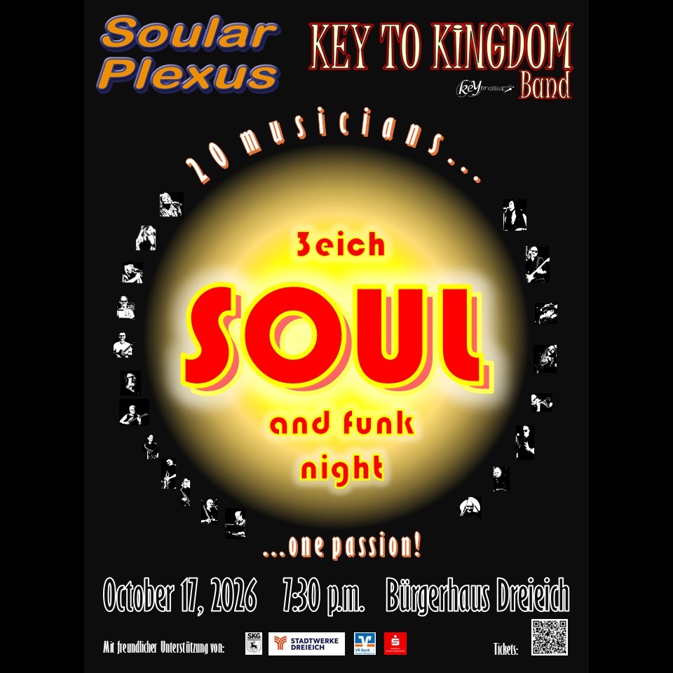 Seit 2007 ist SoularPlexus das Kraftwerk für handgemachte Musik aus dem Rhein-Main-Gebiet. Wir bringen die goldene Ära von Stax und Motown zurück und kreuzen sie mit dem unwiderstehlichen Drive von Deep Funk und modernen Chart-Soul-Hymnen.